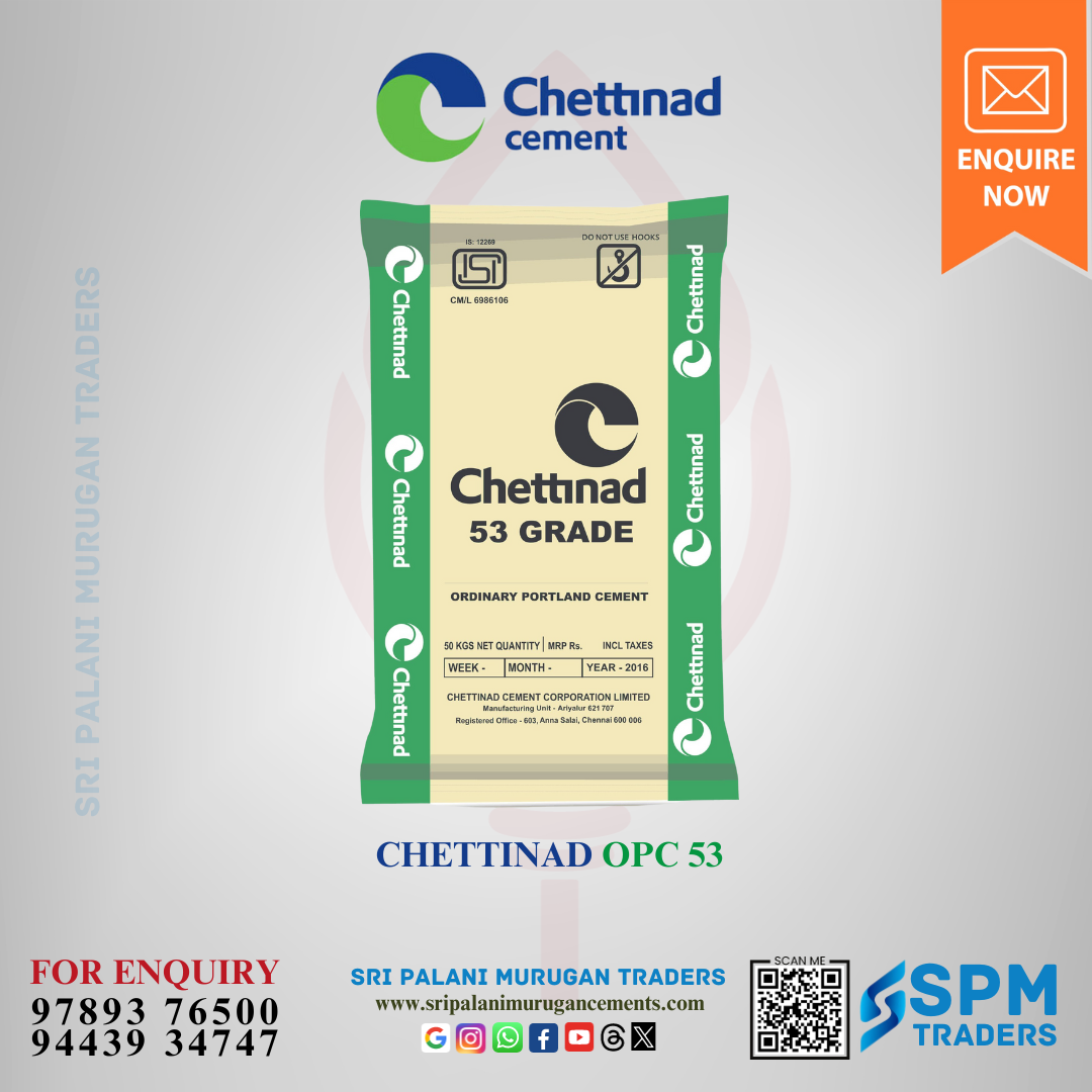 Buy highly pure and fine Chettinad Cement combinations from us, which are known for their great durability, moisture resistance, and cost-effectiveness. These construction-grade materials are appropriate for a wide range of construction applications, including commercial, industrial, and residential. Because of their high resistance to water penetration, they are ideal for hydraulic and marine construction. They are free of undesirable components and solids, which improves mixability and workability. Chettinad Cement provided by our organisation can be given to our clients in various grades based on their orders, with the certainty of timely and safe delivery.